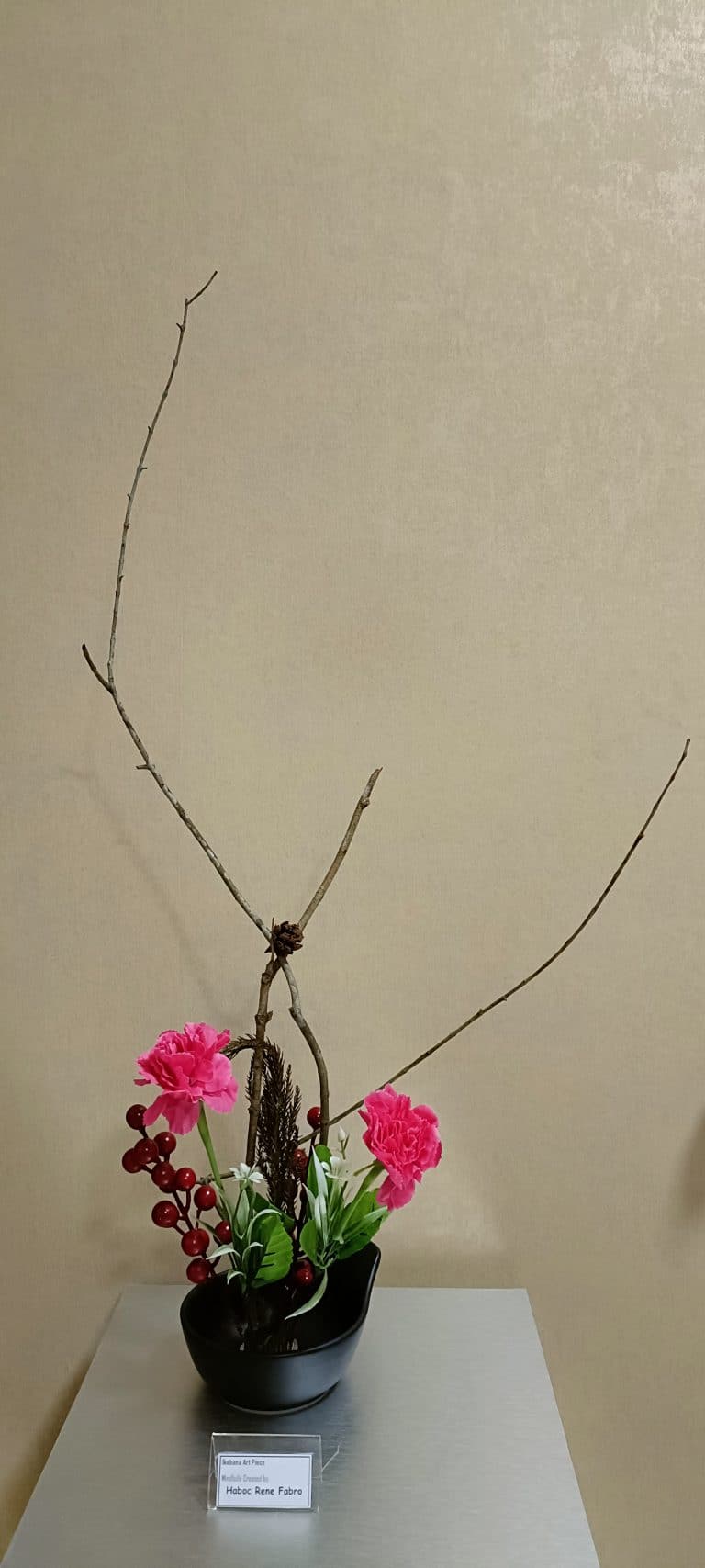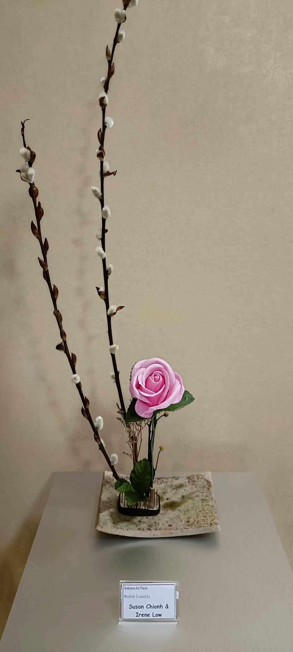Space naturally avails when the confines of concepts are absent. Appearances are then able to manifest spontaneously within space. Such a union of emptiness and luminosity is the essence of Dharma. The spirit of Ikebana invokes our return to Mother Nature, leaning towards simplicity, to embrace and at the same time willing to let go. Giving space to ourselves and to others can indeed lead to pleasant surprises.